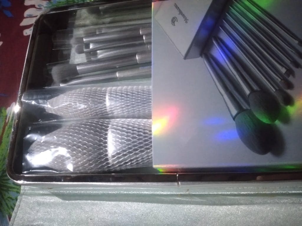 ✨ Sleek Silver Case – Keeps your brushes organized and protected.